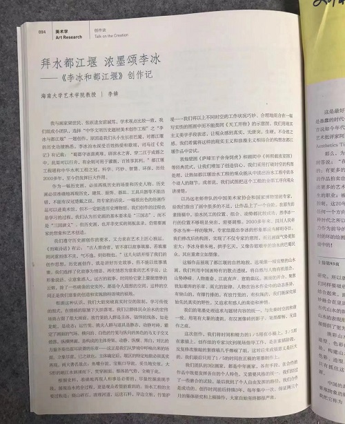 2017年第4期《美术》发表李锛文章《拜水都江堰浓墨颂李冰》。
