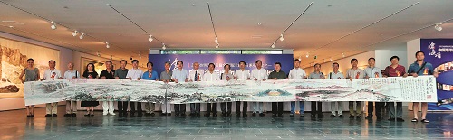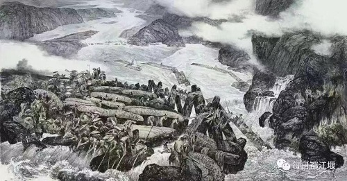 李锛、梁时民、张跃进主题创作《李冰父子与都江堰》270×532cm 2016作纸本水墨
