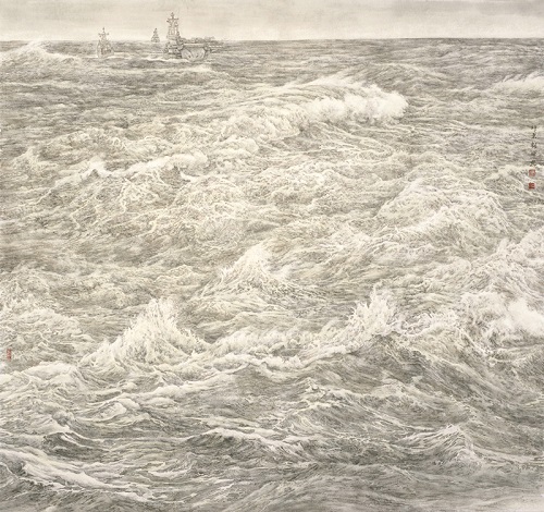 毋庸置疑,这些反映时代最强音、展现人民奋斗精神、表现海洋画派画家高尚情操的优秀海洋画作品,铿锵有力地写就了海洋画派艺术家们胸中有大义、心里有人民、肩头有责任、笔下有乾坤的家国情怀,筑起了一座座中国海洋画艺术高峰。