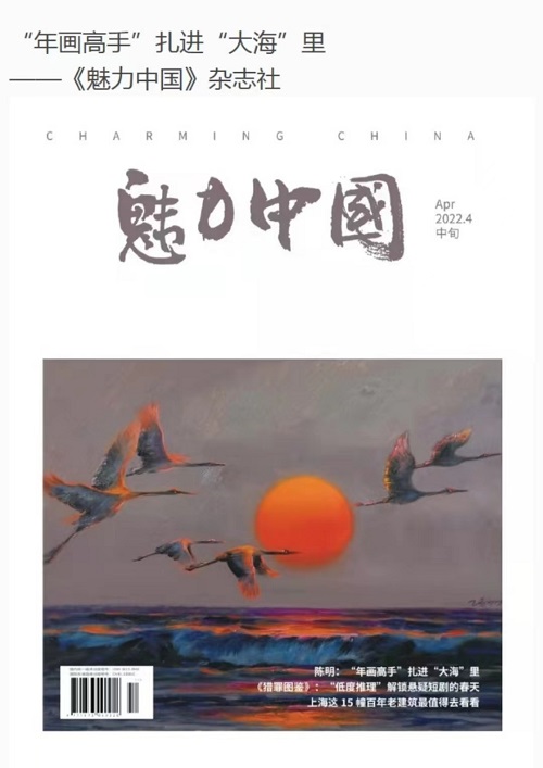 2022年第4期《魅力中国》封面发表陈明作品《鹤舞朝阳》。