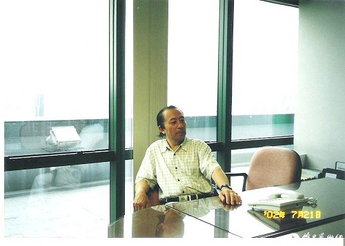 2002年5月,宋明远先生于新加坡创办南洋画院,同时宣告海画派(海洋画派前身)成立,画院下设海石彩墨艺术研究中心。图为同年7月宋明远先生在新加坡南洋画院办公室。