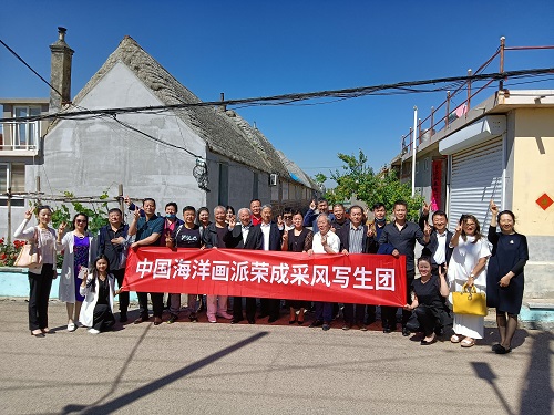 2021年5月,由人美画院主办的“中国海洋画派课题研究班”在山东荣成市举行。这是开班仪式全员合影。