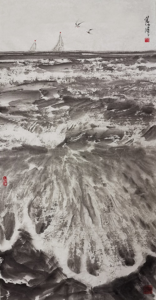 海晓龙、李硕文、李子华、张文倩主题创作《启航》 232×198cm 2022年作纸本水墨