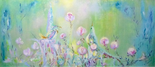 那文丽 Nassrin Afnan (英国)作品《春》95×220cm 2015年作布面丙烯