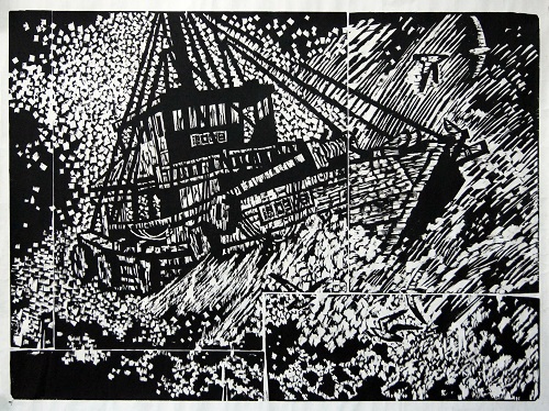 冯兆平主题创作《惊涛》 110.5×80cm 2006年黑白木刻