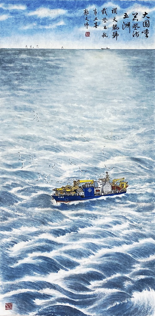 歌颂我国自主设计制造世界最先进的造岛重器天鲲号的重大成就,彰显中国疏浚事业进入世界先进行列;歌颂中华民族的崛起和海洋工程建设的飞速发展。2022年8月在中国施工企业管理协会主办的全国文化作品大赛中荣获绘画一等奖。