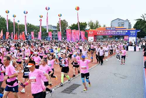 9月8日上午,第三十九届泰山国际登山比赛暨第三十届全国全民健身登泰山徒步活动起跑仪式在山东泰安林校操场举行。来自国内外的3000名专业运动员,以及8000名运动爱好者相聚泰山脚下,共同享受运动带来的乐趣。