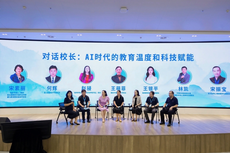 在“对话校长”环节,围绕“AI时代的教育温度和科技赋能”和“家校社协同提示健康素养”两大主题,浙江慈溪中学副校长何辉,杭州钱江外国语学校书记、校长赵骎,杭州濮家小学教育集团校长李庆力,河北保定市第十七中学校长王萌菲,海亮教育健康管理部部长王银平,宇视科技身心健康研究院院长林凯,东方启明心理健康研究院院长宋振宝展开充分交流和热烈讨论,来自全国各地的教育一线管理者和心理教师踊跃参与,积极互动。